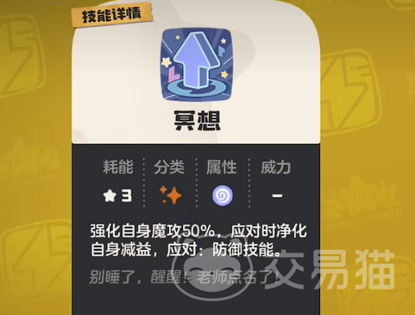 最后,粉粉星的“冥想”技能则为它提供了强大的自我强化能力。通过冥想,粉粉星可以提升自己的魔攻,并且在应对防御类技能时还能净化掉自身的负面状态。这使得它在面对长时间对抗或高防御敌人时,具备了不错的应对能力。