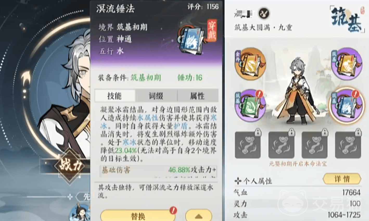 第三套是一个新手时期通用的搭配,只要选金系的剑武技加上水系的剑身法,以及木系的刀绝技和水系的锤神通即可,实战中剑武技能触发冷却缩减,剑身法重置技能,再加上刀绝技吸血续航和锤神通护盾保命的能力,能形成攻防闭环。
