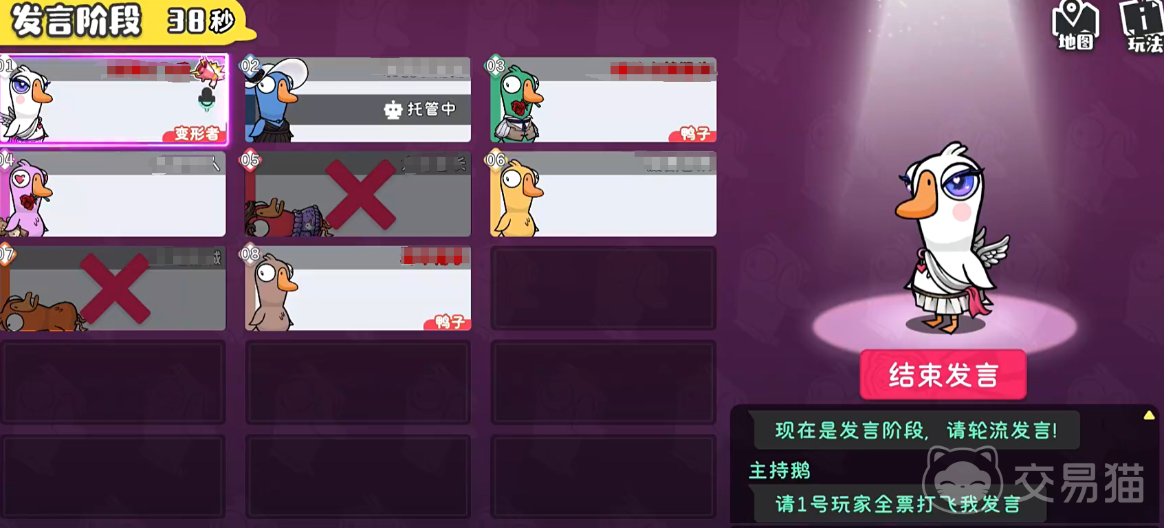 再次,整个模式的流程相对简单。在任务执行阶段,鹅阵营的玩家需在地图上探索并完成任务。在暗杀与破坏阶段,鸭阵营的玩家需破坏鹅阵营的任务进度,并在适当的时候暗杀鹅阵营的角色。在会议与投票阶段,一旦发现尸体,所有玩家将召开会议,轮流发言并投票选出嫌疑人。得票最多的玩家将被判定出局。