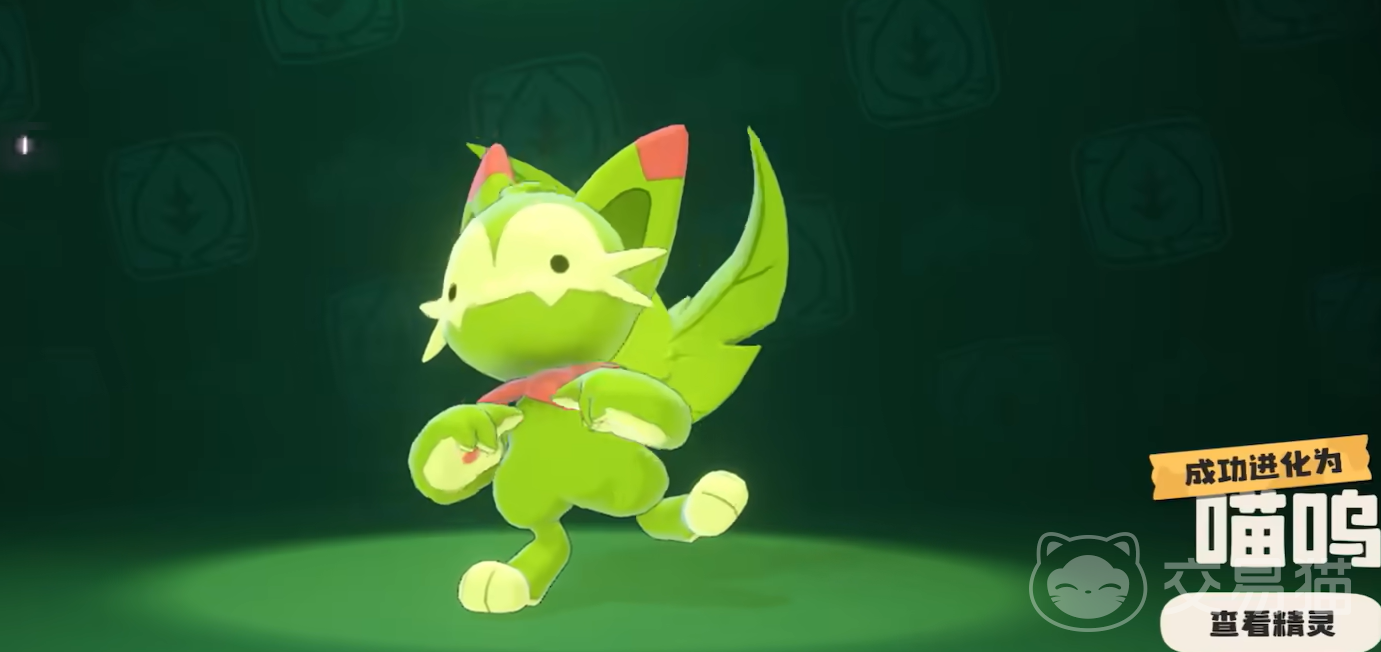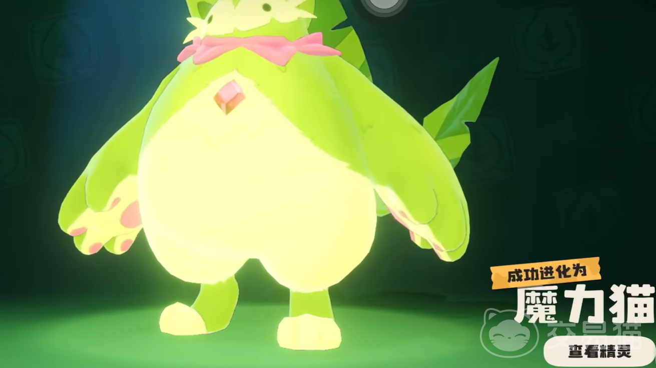 作为玩家在游戏初期能够自己选择的御三家,喵喵是最开始就能够获得的草系精灵,玩家在游戏中随着不断提升喵喵的等级,在等级满足20级后就能迎来第一次进化,在这时候玩家可以在背包中选择让喵喵成长,这样喵喵就能够成功进化为喵呜。