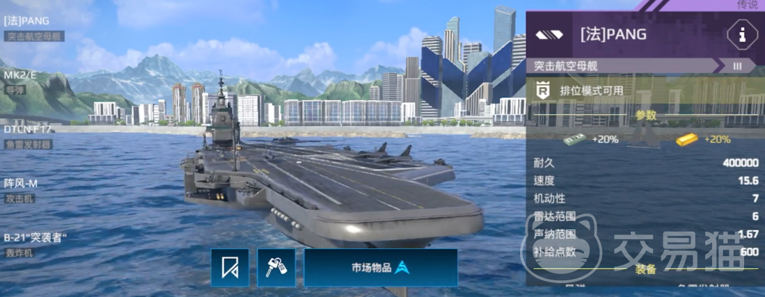 市场航母方面,法国的PANG级配置较为特殊,不太适合新手入手。由于缺少拦截机,开局往往需要依赖无人机“点灯”,这种战术风险较高,对敌方防空能力的判断和航母操作经验要求很高。PANG虽然拥有一枚锁定鱼雷和一个可更换导弹槽,具备不错的反潜能力,但其无锁定防空、无可替换防空,加上一枚易锁定防空导弹,也使她在防空方面较为依赖主动操作。综合来看,PANG级属于高回报高风险的类型,更适合经验丰富的玩家尝试。