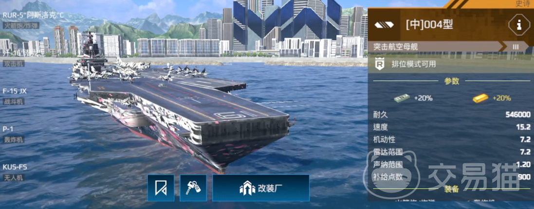 最后来看004号突击航母,推荐的火箭炮为阿斯洛克C或ASW。这两款虽然不是最强输出型,但适合手动操作清理敌方鱼雷,更符合航母对潜艇的反制需求。至于攻击机,J16是目前主流选择;拦截机推荐F15,点灯效率非常高;轰炸机则选择P1,易于上手;无人机方面推荐KUS-FS,不过其他型号也有不错选择,大家可参考其他玩家的实际搭配。直升机方面,如果倾向反潜,灰背隼是可靠选择;若追求综合能力,可选龙翼或V280勇士,具备对空、对舰和反潜多种能力。