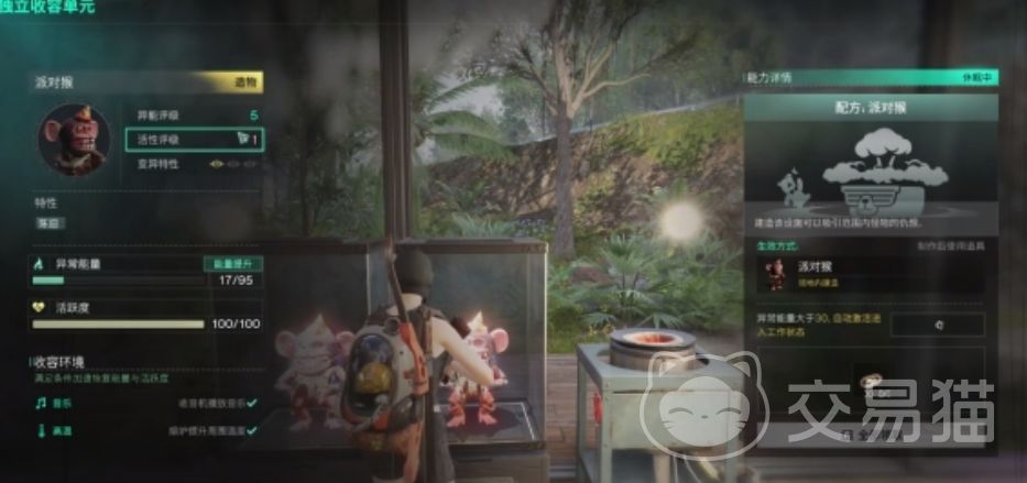 玩家在制造派对猴收容物时需要异常能量值大于30,并且在领地内要有熔炉,发电机等等设备,这样可以有效的提升这个区域内的能量等级。另外在收容环境方面,要放置收音机播放特定的音乐,还需要维持熔炉的高温状态,否则派对猴将会直接休眠。