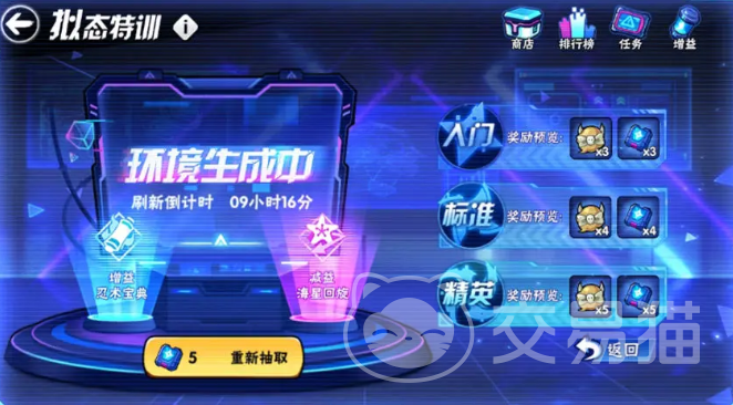 忍者必须死3拟态特训的玩法详情就是以上这些,这是一个相对来说比较简单的挑战玩法,简单在于整体的操作并不复杂,但是其中的战斗还是有难度可选择的,让大家能尽可能的去获取其中的资源奖励,从而兑换更多的好物。
