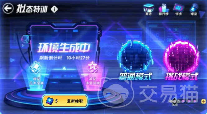 普通模式分为三个难度,每次挑战消耗1个特训点,每通关一个难度,就可以获得相应数量的β核心和β数据。挑战模式分为困难,修罗,炼狱3个不同的难度,每通过其中的难度就能获取对应的限定丹青小姐姐超Q头像一枚。