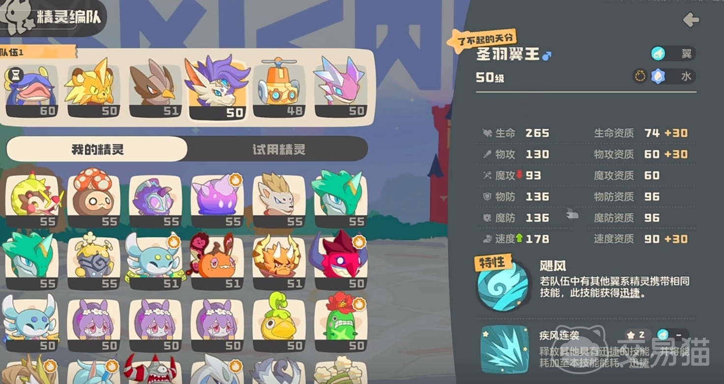 值得一提的是圣羽翼王的特性是能为队友提供迅捷属性,通俗就是速度加成,提升队伍整体出手顺序,而其他翼系精灵,像帕帕斯卡这种则是能进一步放大团队优势。