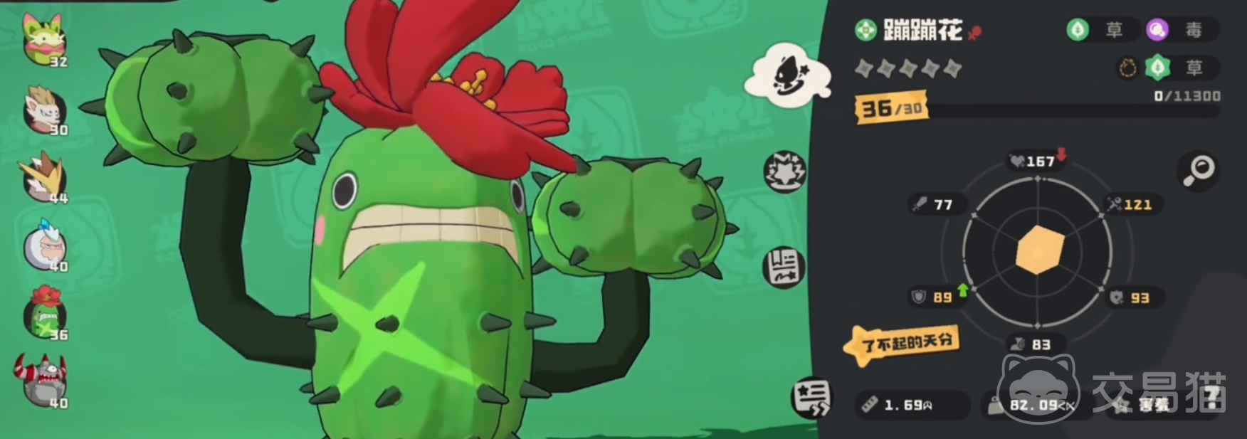 其装备词条也是优先考虑生命恢复、闪避以及抗性的,旨在强化续航能力,对战火系、翼系等弱草属性精灵时,就能优先出手来进行秒杀,不过玩家要是遇到毒免或高回复敌人,那么就需要去进行换宠针对了。