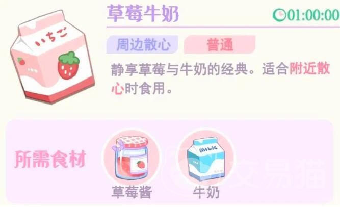 基础菜谱推荐草莓大福与草莓牛奶。草莓大福仅需糯米团+草莓,制作耗时1小时,适合日常投喂Paki触发短途旅行。草莓牛奶使用草莓酱+牛奶,30秒快速完成,可补充角色饱腹值。新手避免尝试复杂配方如草莓五花肉,失败率高且材料消耗大,优先保证每日基础供应。