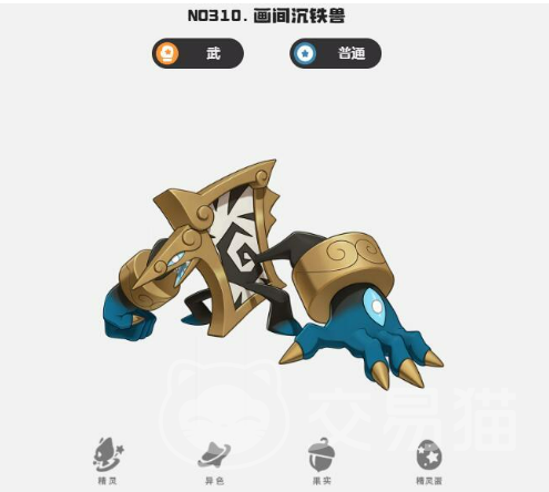 接下来,画间沉铁兽是一只非常有特色的武系精灵。它不仅是武系与机械系的双重属性精灵,还能通过技能“铁壁重拳”在防御后反击敌人,给敌人一个措手不及的打击。它的“墨甲”特性更是能大幅减轻远程攻击的伤害,是防守反击型玩家的理想选择。如果你注重物理输出,可以选择勇敢性格,进一步强化其物攻能力。