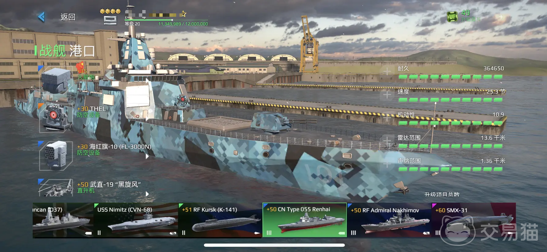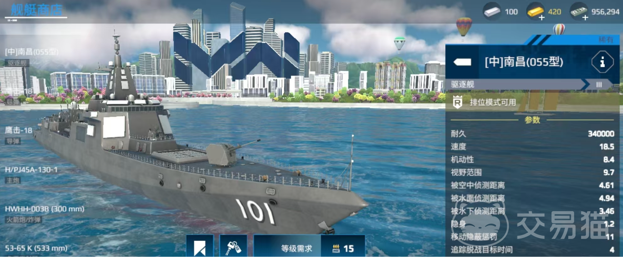 055型驱逐舰的全称其实叫做055南昌舰,在游戏中它的定价同样不高。被认为被认为是“平民神器”,性价比极高,只需要花费1000多万游戏币(美金)即可成功入手。相对于其他战舰来说,它的配置非常优越了。不仅有着灵活的机动性,而且火力也不差。