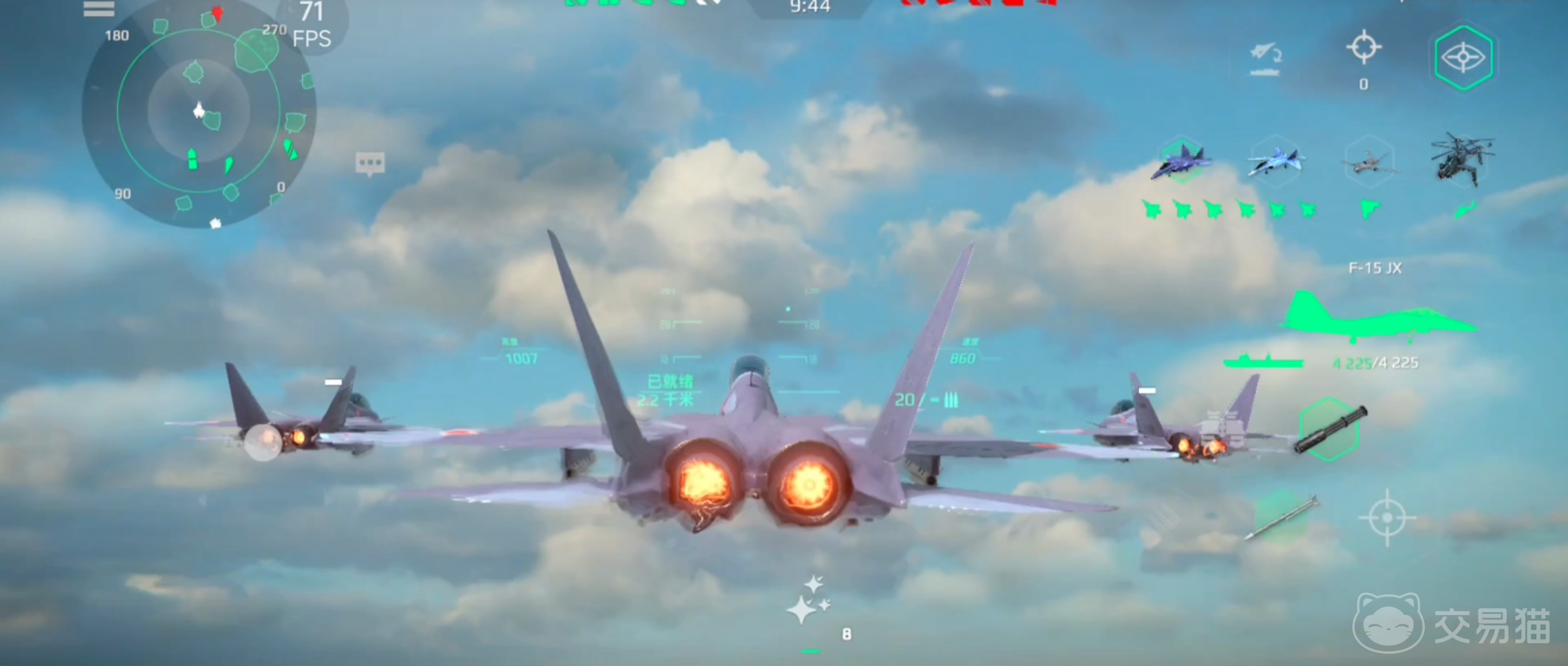 制空战术利用中程导弹(AIM-120)远程消耗敌方战机,保持10公里以上距离,避免进入格斗战。对地攻击建议俯冲投弹时需提前2秒释放激光制导炸弹,利用地形遮挡敌方防空火力。战术组合推荐护航流使用F15JX(4架)+预警机(E-2D),利用预警机的雷达优势扩大探测范围,形成防空网。偷袭流使用F15JX(2架)+无人机(猎人),先以无人机吸引敌方火力,再通过F15JX投掷炸弹突袭。