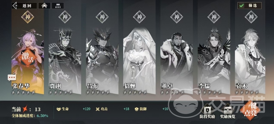 群雄阵营的武将当中,神将级别有张春华、贾诩、吕布、貂蝉、董卓等,吕布也是其中具有代表性的一员,对群爆发的能力超强,他的普攻能够对前排整排敌人造成物理伤害,尤其对于半血以上的敌人,有着100%的增伤效果,这一特性让他在面对敌方血量较多的阵容时,能够迅速削减敌方有生力量,貂蝉以其倾国倾城的美貌和独特的魅惑技能而闻名,她能够在战场上迷惑敌方男性武将,使其为自己一方所用,良将级别的蔡文姬是一位才华横溢的女性武将,在战斗,她的技能可以为己方队友提供增益效果,同时也能对敌方造成伤害。
