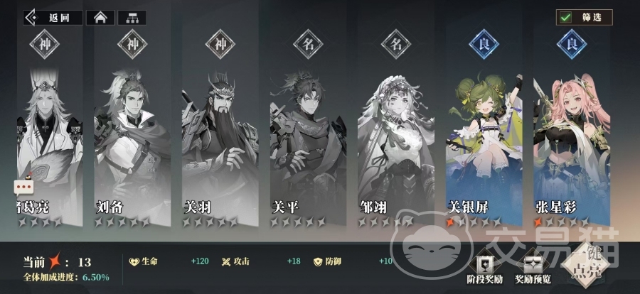 游戏中的这些武将按照阵营可以被清晰地划分为魏国、蜀国、吴国、群雄等几个大类,为了更细致地展现武将们各自独特的特点,游戏还进一步将他们划分为巾帼和谋士等类别,而如果按照职业来进行筛选的话,又可以分为攻击类、防御类、辅助类,不同类型的武将在激烈的战斗中发挥着各自独特且关键的作用,从资质方面划分则可以分为良将、名将、神将以及无双等不同等级。