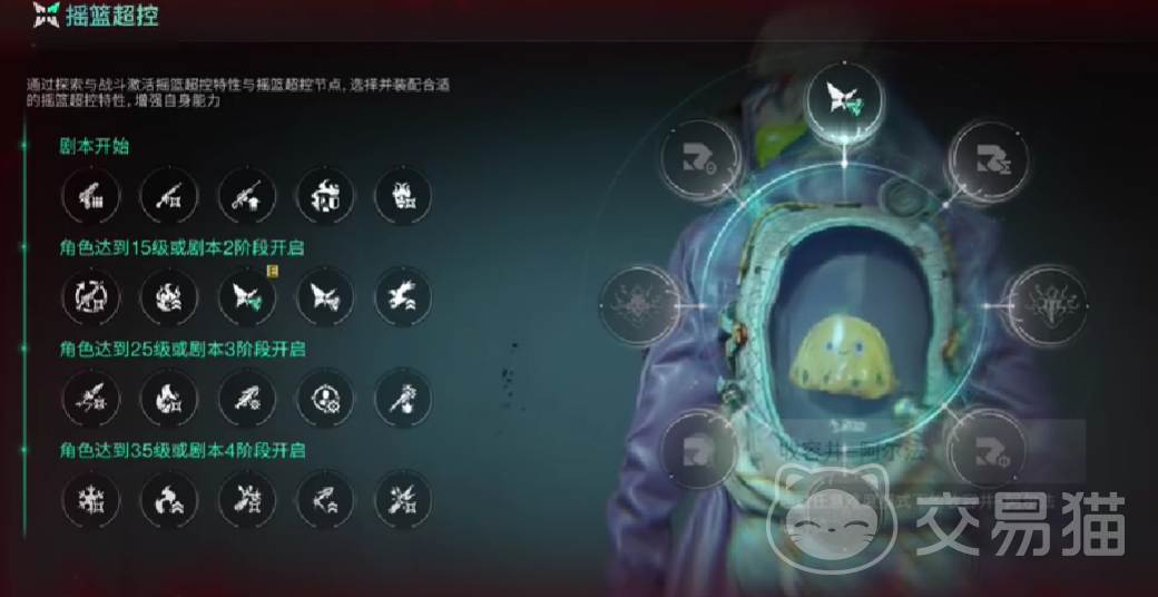 要说摇篮系统的具体玩法是借助科技树跟动态词条的机制,给玩家呈现出相对自由的技能定制体验。在这个系统中玩家需要解锁第1个boss那就是浮影猎手,借助密钥跟转能电池,就能够逐步激活四大类的配方,这里的四大类分别为采集,工艺,经营,建造。随后玩家借助升级,就能够解锁多个摇篮节点。