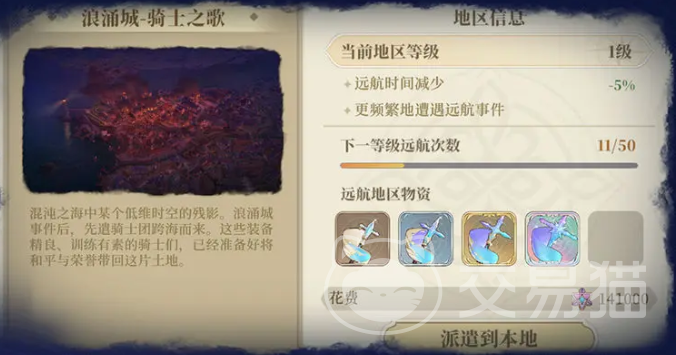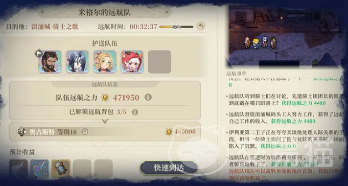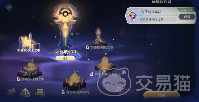 可以通过混沌之海港口中选择“远航”进入,也能通过个人信息页快速进入。这是一个派遣挂机,选择队长,尽量提高队员阶级,星级的常驻轻松玩法,主要的流程就是派遣角色,带回物资,升级远航灯塔,逐步解锁同时深入到更多的区域。