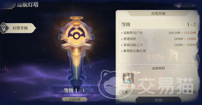 队伍的“远航之力”决定了每一次派遣的收益,达到加成条件可以获得更多收益,带回来更多的物资,派遣角色之前可以领取当前队伍的远航之力,旅途中也可能出现特殊事件获得额外的远航之力;收集的物资可用来提升灯塔等级,此后各方面的收益都得到提升。