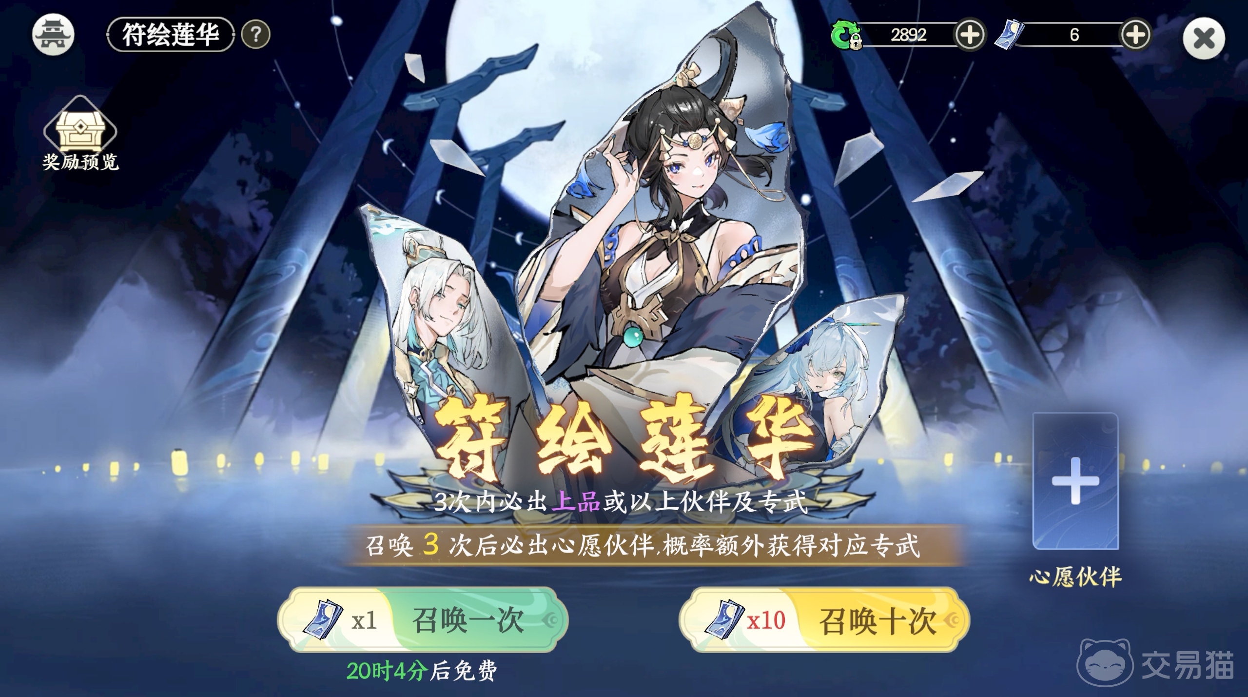 与其他同类型的手游一样,符绘莲华也设置了保底机制,连续召唤十次,一定会爆出上品及以上的品质的伙伴或专武,相对来说还是比较良心的,比如前期比较好用的炎啸云、白飞等伙伴,基本上用不了几次就能抽到,在抽卡之前,大家可以先看看当前卡池中有什么,要是没有自己需要的,不妨把资源先存起来,等卡池更新后再全部用掉,这样中奖的概率也要更高一些。