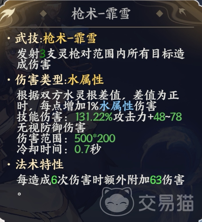 莫无生的技能特点很鲜明,武技枪术霏雪能对攻击范围内的目标,释放三个灵枪,进而造成一定数值的伤害,绝技千幻毒枪可以召唤一支巨枪,它将以圆形扫过附近的敌人,同时对它们施加冰丝气血降低效果,抑制目标的气血属性,进而削弱对方的攻击力,莫无生的神通是极天泣破阵,使用它之后,角色会向前冲锋,冲锋时遇到的目标都会被攻击,同时自身会增加冰丝气血降低效果,所以这招适合在关键时刻用,对战前期还是以武技和绝技的攻击为主。