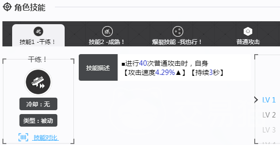 索林在战斗的过程中还会展现出强大的实力,冲锋枪射击是普通的攻击。在每一次攻击之后,都会给目标造成4.68%的伤害。干练是被动技能,在经过40次的普通攻击之后就可以提升自身的攻击速度。成熟是另外一个被动技能,当自身体力处于最大的状态时,就可以提升暴击伤害,还有自身的暴击。我也行是主动技能,有40秒的冷却时间,可以给范围内的敌人全部都造成伤害。