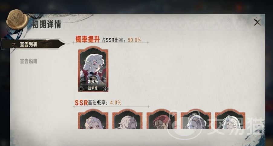 命运宣告道具具有重要作用,它主要用于在游戏的卡池中进行抽取角色等操作,玩家使用命运宣告可在常驻的苍裔的苏生池子中抽取角色,在这个池子中有不同品质的眷属可供抽取,其中各个等级的眷属都有概率获取,池设有保底机制,每60次命运宣告内必定会获得一名SSR品质的角色,当玩家获得SSR眷属时,保底规则会重新计数,累计命运宣告的次数,还能让玩家获得抽取实物奖励的机会,奖品十分丰厚。
