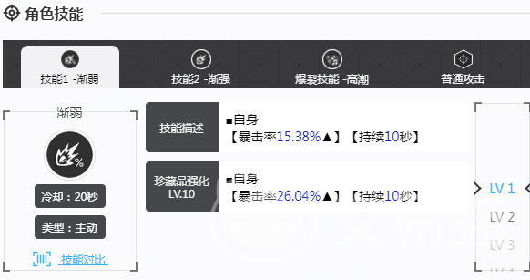 战场上的尤莉亚,属于一个强大的火力输出。普通攻击就可以迅速地消耗敌人生命值,当普通攻击命中在符合相应的次数之后。渐强以及渐弱被动技能就会触发。渐强可以有效提升暴击率,还有暴击伤害,减弱则主要是减少不必要的伤害,可以提升生存能力。高潮技能更是强大,可以给防御能力较强的敌人造成高额伤害。