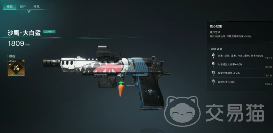 在防具套装选择上孤狼套装是首选,三件孤狼套装不仅能增加弹匣容量,为持续输出提供保障,还能给予额外的暴击属性加成,并且其套装效果可增加暴击伤害,这一系列加成与大白鲨高爆发的特性相得益彰,能极大提升大白鲨的输出能力,使它在战斗中的表现几乎可与步枪相媲美,无论是应对小怪群还是挑战BOSS,都能游刃有余,倘若没有孤狼套装,可采用庇护者套装加上重装套装进行过渡,对于暴击率较低的玩家,将重装套装替换为猎鹰套装是不错的选择,猎鹰套装能有效增加暴击率,有助于提升大白鲨的整体伤害输出稳定性。