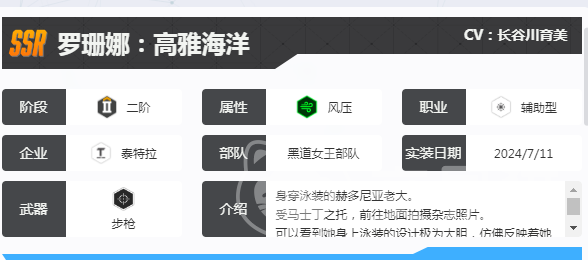 胜利女神新的希望罗珊娜高雅海洋在游戏中整体的表现还是很不错的,无论是战斗中的辅助能力,又或者是角色互动中的魅力,都会给大家留下深刻的印象。玩家可以去尽情的体验一下,看一下这一个角色有什么样的特点。