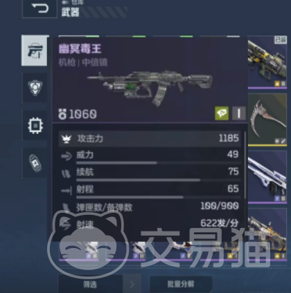 不仅如此,幽冥毒王的射击速度相当快,这使得它在高密度敌人出现时,不至于陷入火力不足的尴尬。它能迅速清除敌人,避免被敌人围困,从而为你的队友争取到宝贵的反击机会。而且,这款武器的毒雾效果也是它的一大亮点,打击敌人的同时,还能在一定时间内造成持续性的伤害。你可以把它当作一个“定时炸弹”,在敌人周围释放毒雾,等待它们慢慢失去战斗力,最终倒下。