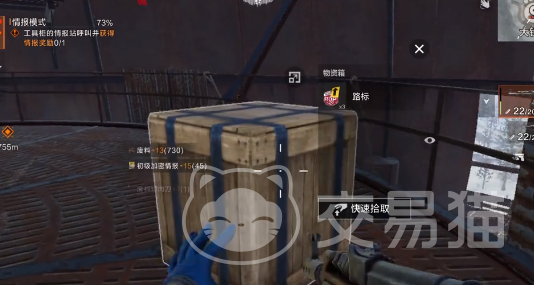接着继续的往上走,下面还会有一个物资箱,记得一定要拿。然后原路的返回又重新的回到之前的位置,可以向左拐接着往上走,这里就有两个物资箱。另外还有一个位置相对比较特殊的板条箱子,需要沿着特定的路线慢慢的走过去。