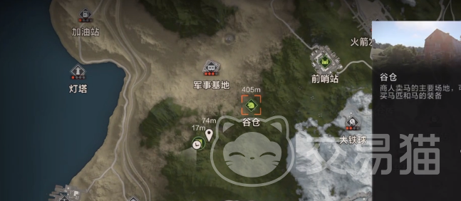 在打开游戏地图之后,就能看到有一个马头标记的地方。玩家在接近时还需要小心把所有的武器收起来,在这个谷仓的周围还有很多的机枪炮台。往往攻击力是很强的,如果贸然的开枪就可能会被秒杀。