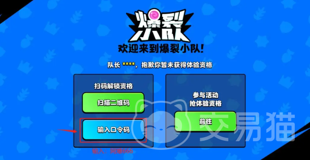 当前游戏体验资格的限量兑换码为“阿爆666”,玩家在下载游戏之后,直接在游戏的面板内,选择输入口令码,随后将上述这一条兑换码直接输入到方框之中,就可以获得测试资格了。