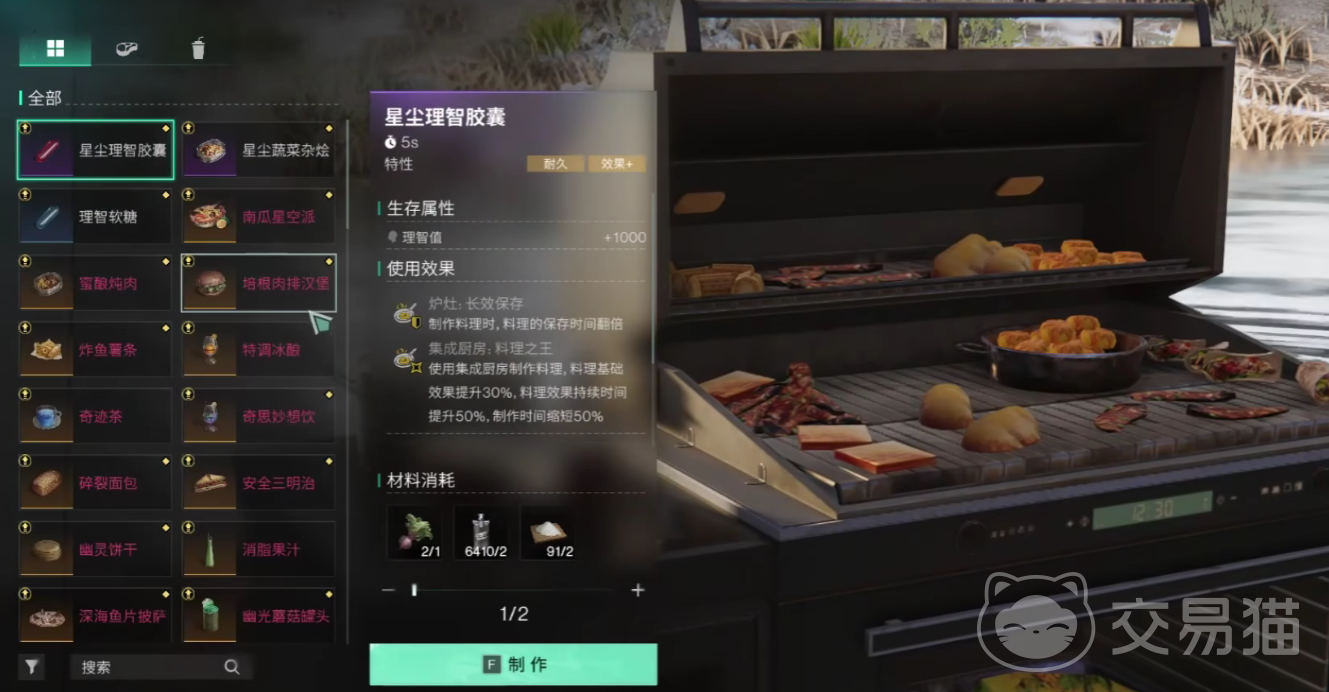 当然,玩家在游戏当中,也可以使用异味软糖制作怪味红烧肉,怪味红烧肉可以增加玩家饱食度一百点,并且附带有增加免伤的效果,当玩家理智低于40%时,可以获得15%的免伤能力。