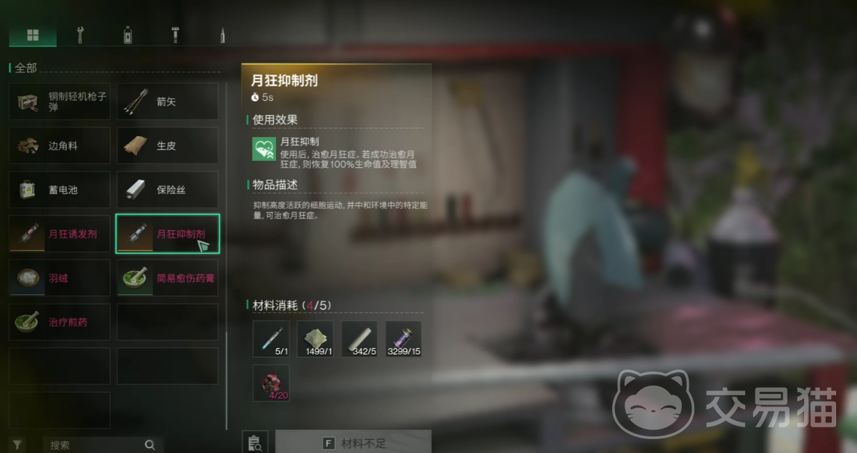 值得一提的是,异味软糖也是非常重要的制作材料,它可以用于制作月狂抑制剂,月狂抑制剂属于特殊类药物,它可以在月狂时期,抑制玩家的变异。