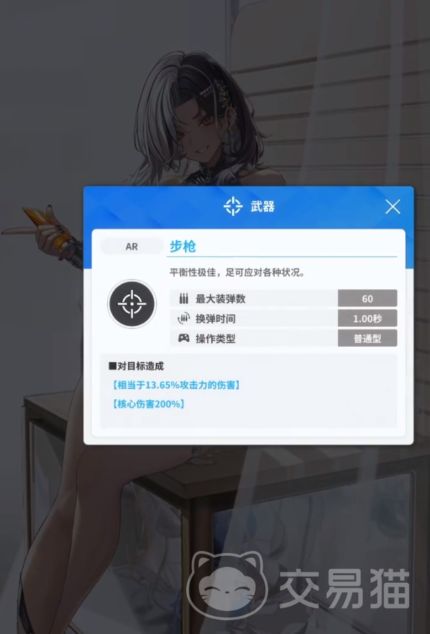 罗珊娜使用的步枪,最大装弹数为60,操作类型为普通型,换弹时间为1.00秒,武器名称是黄金士兵。每次普攻能对目标造成相当于13.65%攻击力的伤害,核心伤害为200%。虽然单次普攻伤害数值看似不高,但在持续输出过程中,也能为团队提供一定的伤害补充。