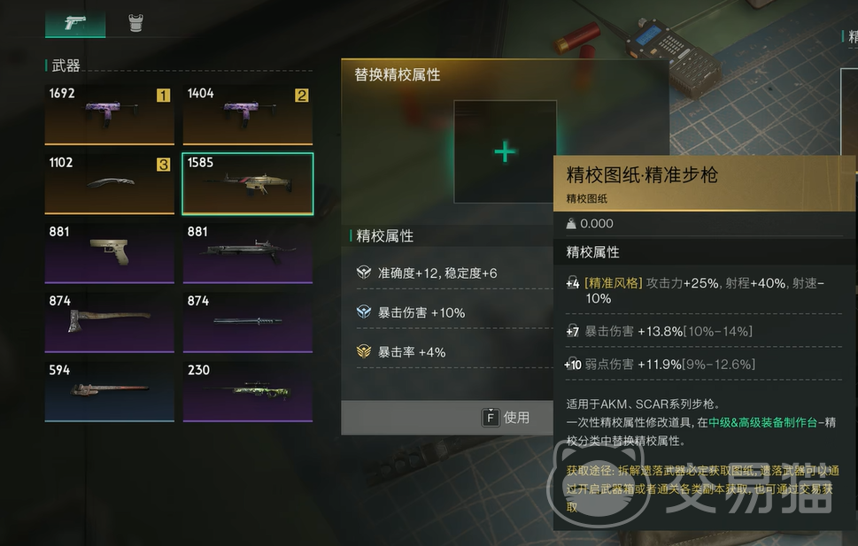 其次,如果你对已经精校过的武器进行分解,系统并不会返还已消耗的图纸。这意味着,分解武器后,任何已加装的精校图纸都将永久丧失。因此,如果你不打算长期使用某个武器或图纸,最好在分解之前仔细考虑。