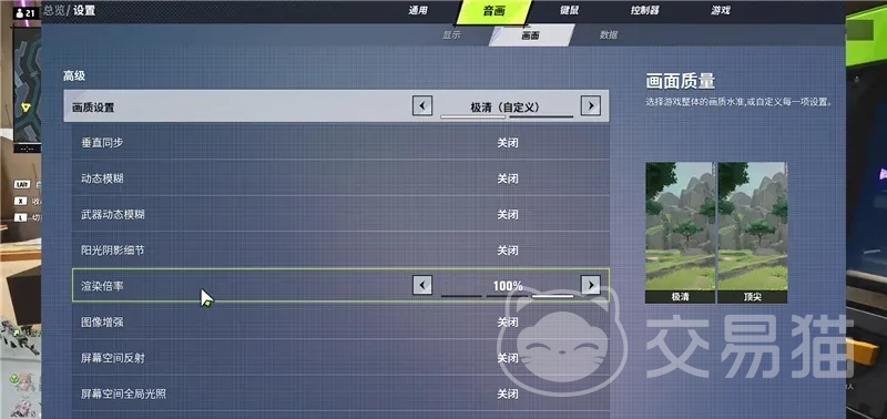 玩家们可以利用超高的渲染倍率来更好的使游戏的画面,更加的细腻,同时还需要设备拥有一定的计算能力,再啷个在操作时更好的保持流畅的效果,大家可以将这个设置调节到100%,还有一些贴画数量以及武器动态模糊,也是游戏画面中非常常见的特效。为更好的增强真实感以及动态的效果,但是它会占用大量的图形处理资源。
