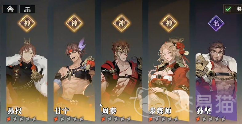 三国志幻想大陆2枭之歌吴国火烧队就是围绕着周瑜陆逊来构造的,上述这几位则是最优选,还有第六个补位的,根据关卡的类型来补充不同的武将,有的需要群攻的,有的需要可以切一排的或者一列,还有的可以上双治疗或者双盾,大家根据实战情况选择即可。当然,如果后续有孙策实装的话,这个位置也是有可能摆上他的。