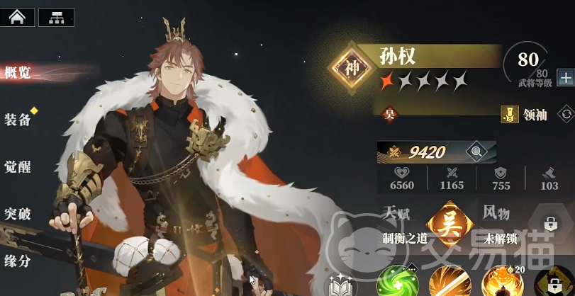 再一个人选择是“孙权”,他的通用技能里有禁疗,再加上天赋中“经略”效果,给队友全体拉条,绝技则是给队友减少消耗和提升,算是火烧队的加速器了,也是需要纳入队伍中的。