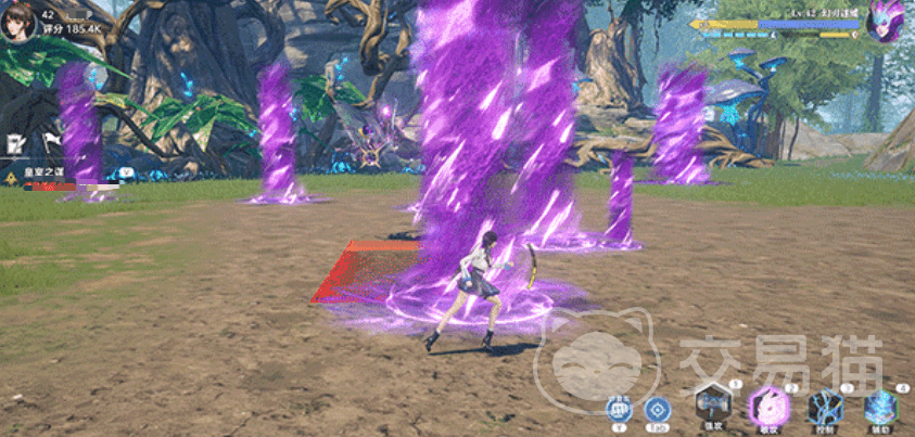 它的第二个技能会在玩家的脚下生成梦境花纹,花纹在一段时间后会向上喷涌出紫色状的龙卷风,造成大量输出,可以在发现脚下有波纹时,快速蹦跑来躲避,它的最后一个技能会一次性召唤三道紫色龙卷风来攻击。