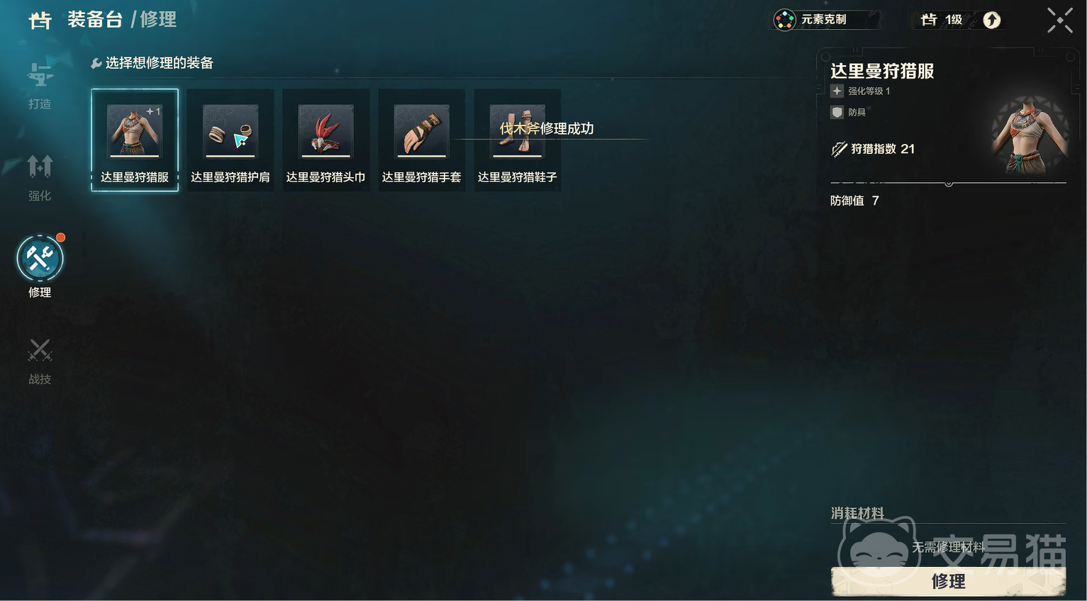 修理成功之后,就会在当前页面中消失,剩下的装备都仍旧需要修理。由于其他低品质的装备都无需耗费修理材料,所以大家看到可以顺手全部修了。不过后续高品质的装备修理起来的话,可能就需要耗费不少珍贵的材料了,但是对于后期的大家自然也无所谓。