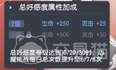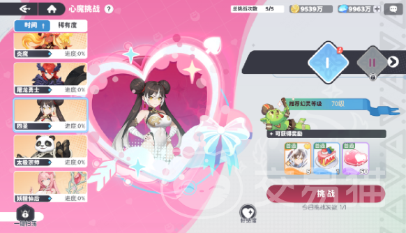 要想获取好感度道具,那么自然就应该选择心魔挑战。这里会有一些限制性,每天初始只有5次挑战机会,每一个关卡每天就只能通关一次。不过在通关成功之后就可以获得好感度道具也可以获得记忆碎片,有效提升幻灵的好感度。