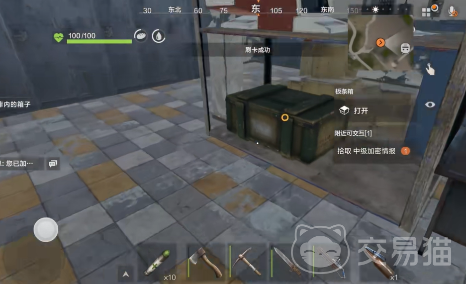 接着前往基地的正中心,这里面有一栋大楼,这个大楼的第一层就有宝箱,不过需要玩家使用红卡去刷卡,而这个红卡就在基地的仓库里面,同样也是电路的玩法,其解锁条件基本一致,这样就能获得红卡将第一层的楼门解锁掉,进去以后在夹子的下面就能看到一个武器箱子。