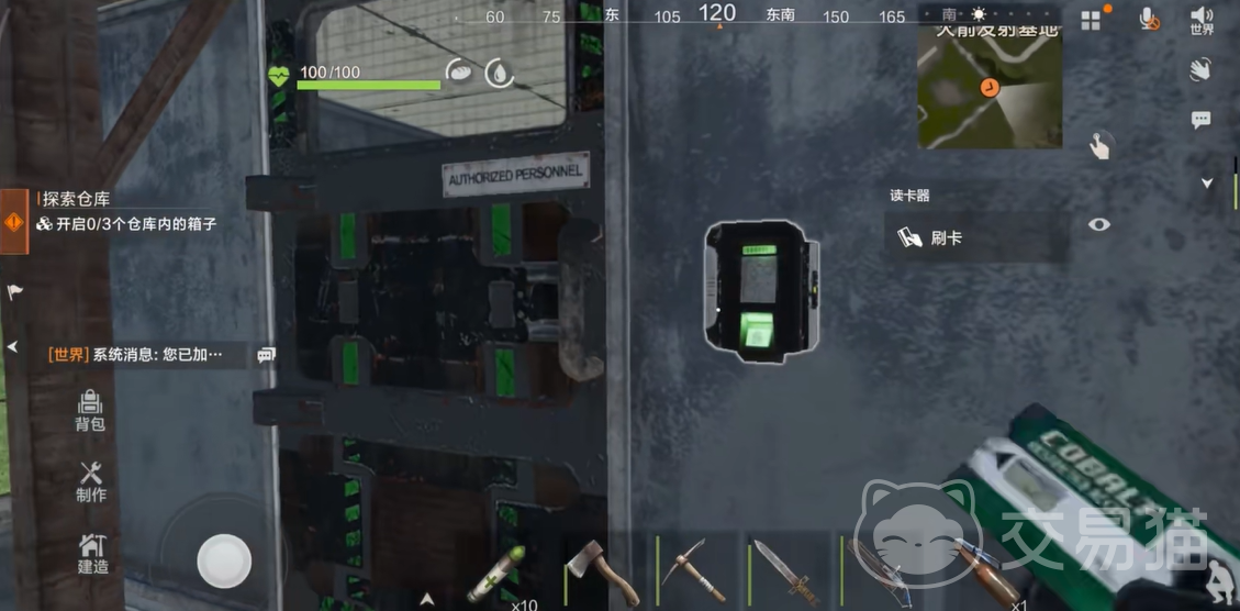 首先玩家们去基地底层的仓库中解锁电路,这个电路的解锁方法就是三个颜色的电路能连接到末尾,导致就是红色电路在最左方,而绿色电路在最右方就能完成电路的连接,就可以获得一张绿卡,这个绿卡的作用就是开启基地的第一个仓库,可以获得里面的储物道具。