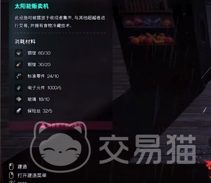 在开启传送点之后,马上就可以放置贩卖机。集市上所使用的全部都是太阳能贩卖机,在制作的过程中也需要特定的材料,建议提前收集好材料,以免手忙脚乱,其中众多的材料中一个比较关键的就是保险丝。