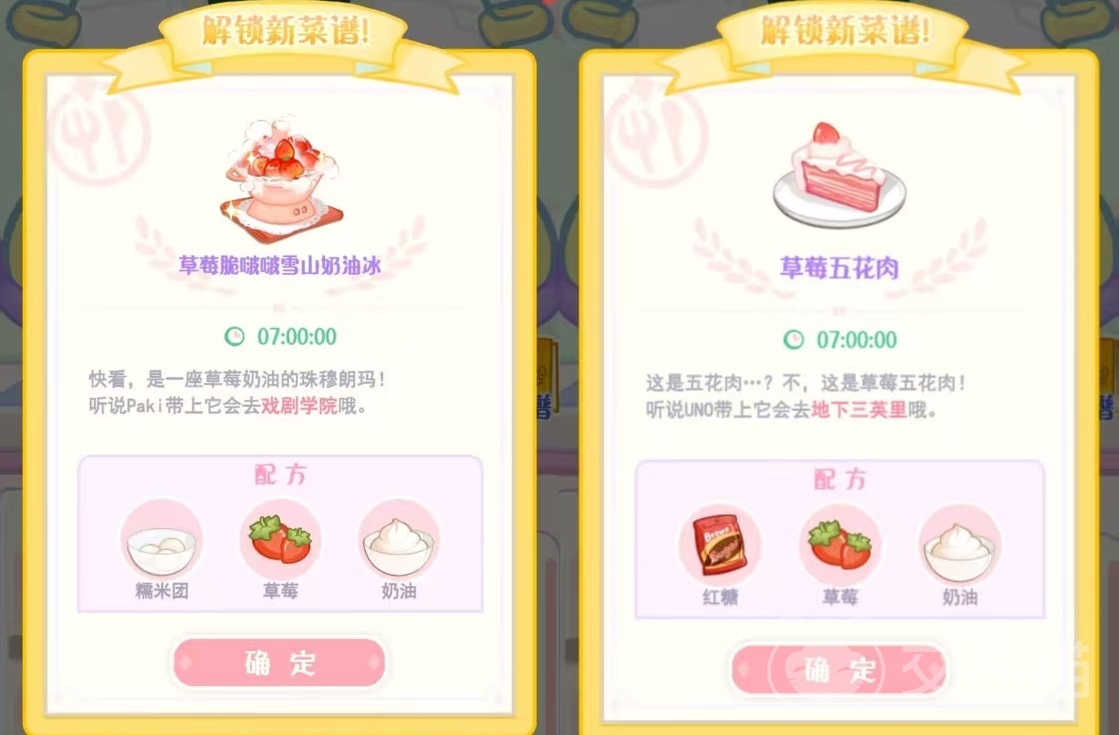 看完小编的介绍之后,大家现在就清楚花花与幕间剧草莓菜谱有哪些了吧,通过在游戏中不断冒险和搜集,可以解锁更多的美食菜谱。小编搜集的也不一定是所有的类型,大家通过自己的探索,或许会发现更好玩的烹饪。