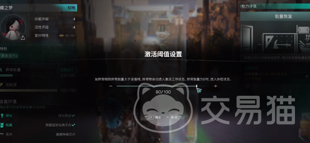 蝶之梦的调整相对比较灵活,一开始可以调整到30。在后续游戏的过程中,可以根据自身异常能量的回复情况,然后去做出调整。如果异常能量恢复比较快,就可以适当性的提升蝶之梦的数字,而如果回复比较慢,就可以适当性的降低。