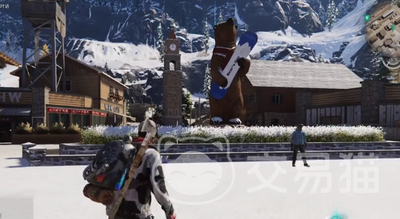 熊栖雪场:中间有熊的地方,大家就可以朝着那一个方向,然后更快的进入到花坛。花坛的右边就有一座房子,里面就是商人。