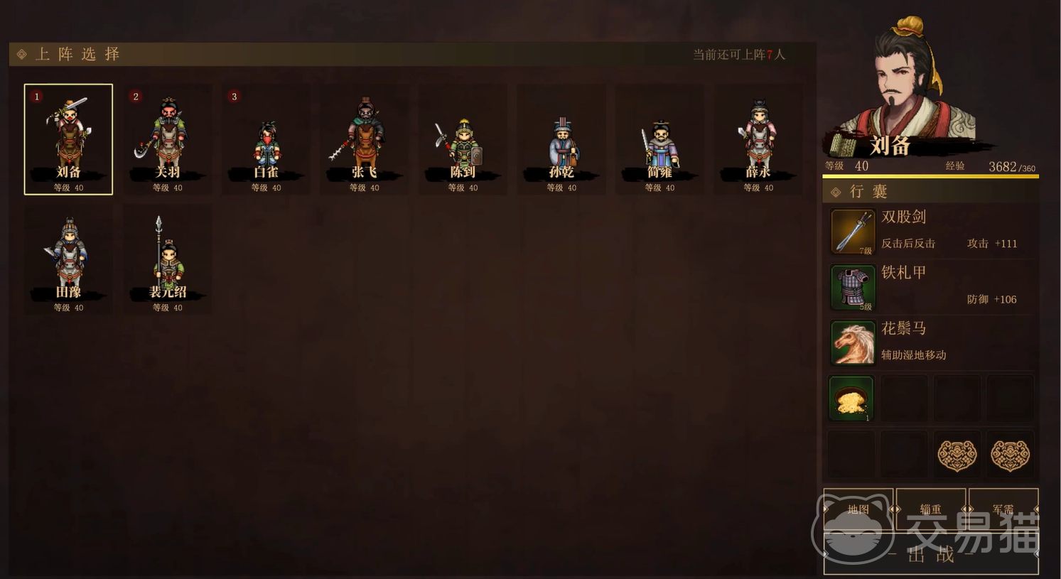 首先第一步要做的就是进行上阵人员的队伍搭配,这里首先推荐刘备,作为首领不仅武力超群,又可以加各种buff。二号位的话,就可以用关羽,同样实力非凡。然后剩下的位置大家可根据自身的角色去选择,一般搭配远程输出+坦克+辅助即可。