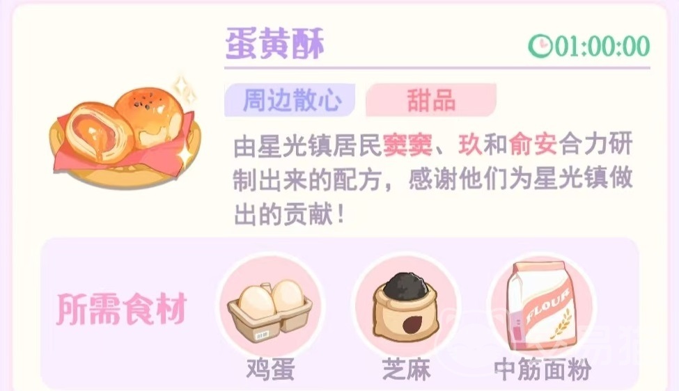 游戏中设计出的三个伙伴分别是Paki、Peacoo和Uno,大家在准备美食时一定要照顾到不同小伙伴的偏好,这样才能达到目的。先来看一下paki的爱好,在周边散心方面,他主要喜欢的美食包括蛋黄酥、坚果酥、普通冰淇淋和草莓大福。蛋黄酥是通过鸡蛋、芝麻和中筋面粉制作,坚果酥是通过花生和芝麻酱制作得到。普通冰激凌只需要食用奶油就可以制作出来,草莓大福需要的食材是糯米团和草莓。