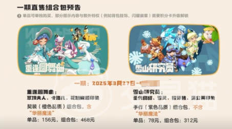 在这次的爆料时装中主要有圣代甜甜、雪灵、猿牙猪、蒲公英印象组合包,如果没有包含单品,购买的价格是78元,如果是组合包价格是312元。